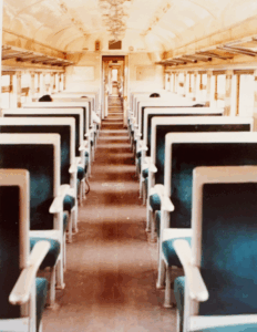 三田駅で満員の昔ながらのこげ茶色の客車列車(おそらく福知山始発12時36分、三田14時47分発、終点大阪16時07分着の738列車)に乗り込んだアスナロは、車両の奥へ奥へと人込みをかき分け入って行ったところ、ちょうど車両の真ん中あたりで、通路に新聞紙を敷いてあぐらをかき一升瓶をラッパ飲みしている酔っ払いが一人、管(くだ)を巻いているのに遭遇しました。